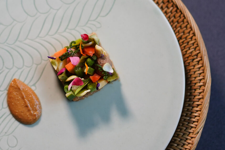 Amuse Bouche, sebagai perkenalan, menggugah selera dengan Lawar Tortelini, Skewer Lamb, Salmon Tartar, Betutu Cannelloni, dan Crispy Lak-Lak, yang tidak hanya memanjakan lidah, tetapi juga mengajak untuk merenungkan makna di balik setiap hidangan.